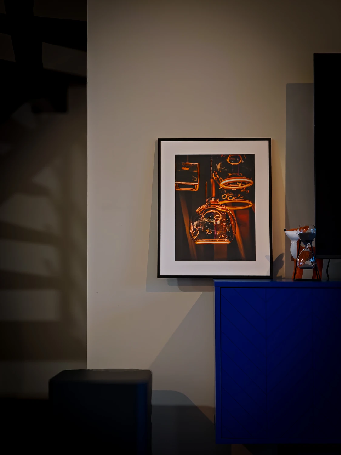 Mul oli kaamera käes, nii et ei olnud mõtet pikalt mõelda. Tegin ühe kaadri, sest olukord oli lihtne. Hiljem nägin, et klaasid ja peegeldused joonistasid pildile mitu kihti – just see teebki selle tööks, mida saab seinale panna. Seal on vorm, valgus ja natuke luksust, aga ilma poosita.