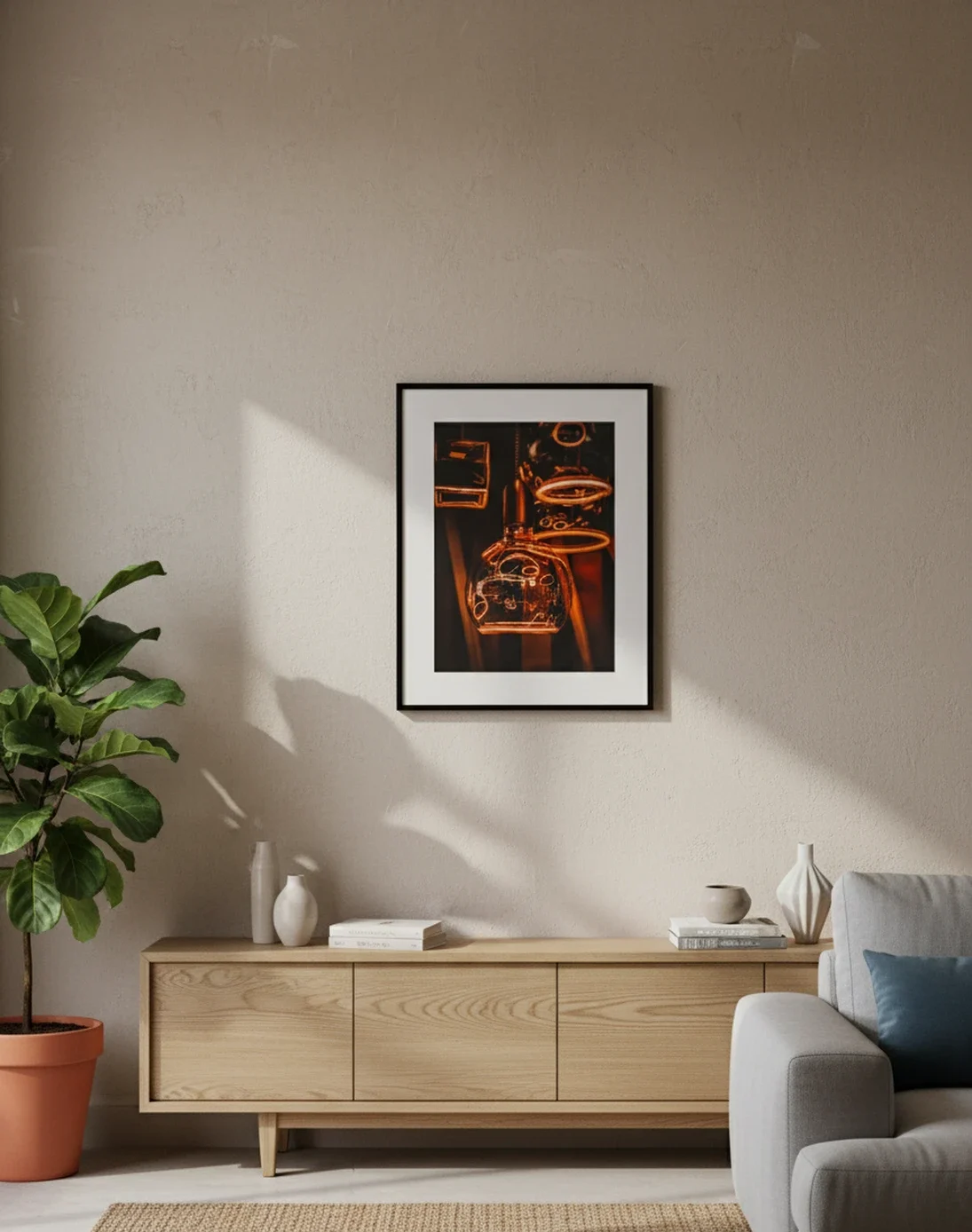 Pilt printitakse Fujitsu fotopaberile (valikus läikiv või matt), mis hoiab selle oranži tooni puhta ja detaili teravana.